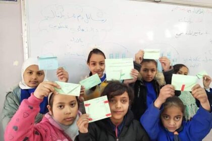 مخيم خان دنون.. أطفال مدرسة الحولة يوجهون رسائل دعم لمنكوبي الزلزال