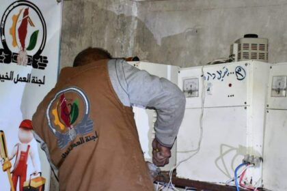 جمعية خيرية تصلح المنظمات الكهربائية لمضخات المياه في مخيم خان دنون