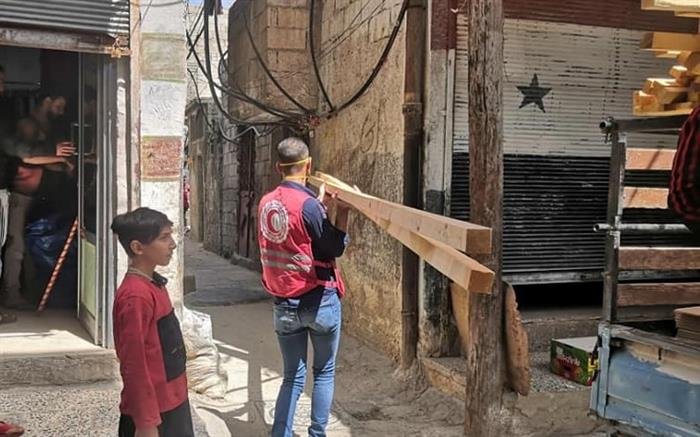 The Palestinian Red Crescent organization in partnership with the Syria Red Crescent have garnered aid items to equip five houses that sustained material damage in AlNeirab Palestinian refugee camp in Syria.