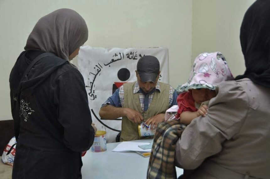 The Charity Committee for the Relief of Palestinian People resumes providing aid to the displaced residents of Yarmouk, as it distributes baby milk to the displaced children, while preparing “Al Amal” campaign which will contain 1500 baby milk cans.