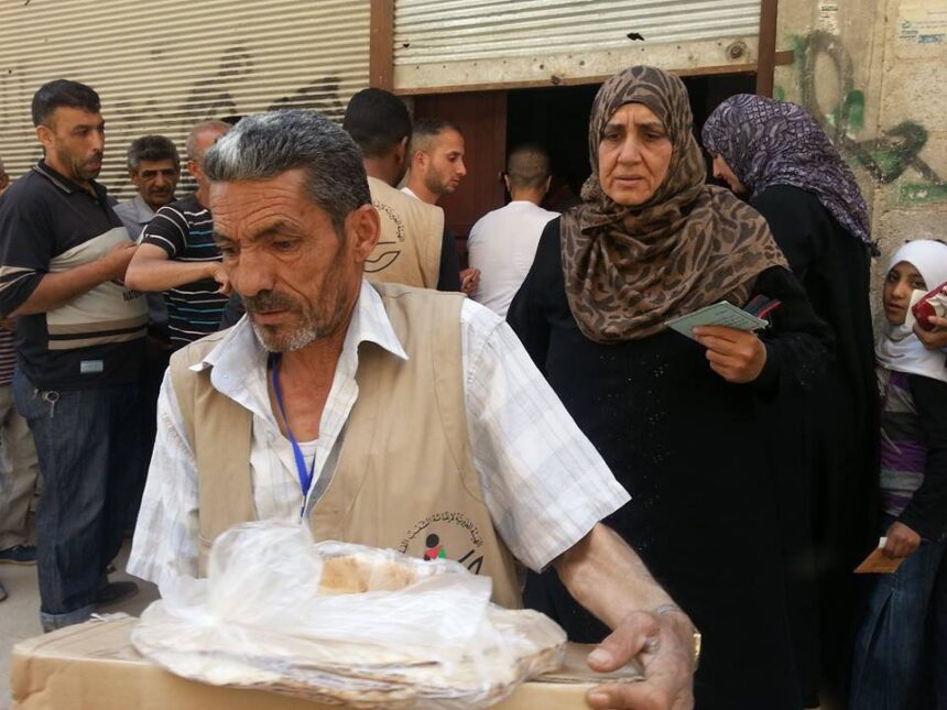 Global Relief Organization in collaboration with the Charity Organization for the Relief of Palestinian People distributed around “500” share of fruits and vegetables to the residents of Yarmouk who are displaced in the town of Yalda. They also distributed “250” food rations to refugees in Jaramana area.