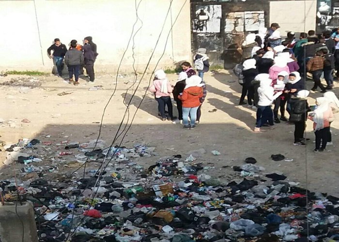 Residents of AlSabina Camp for Palestinian refugees, in Rif Dimashq, continue to speak up against the trash mounds piled up across residential alleyways and near school entrances, resulting in bed smells and the spread of life-threatening diseases.