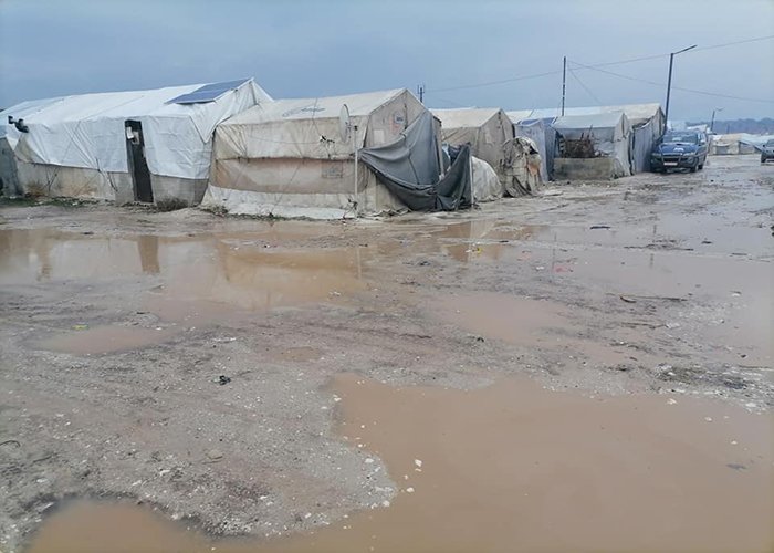 Tents have been flooded with water as torrential downpours have swamped Palestinian refugee camps in Afrin, north of Syria.