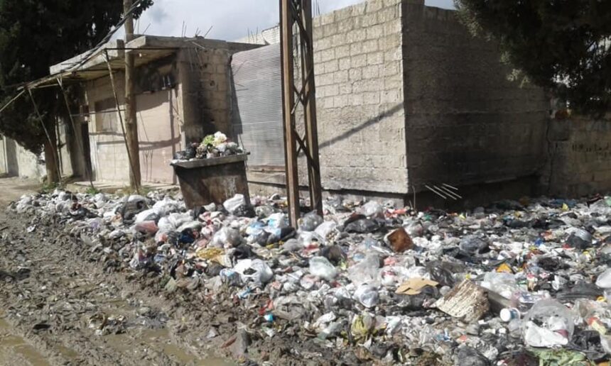 Civilians taking shelter in Syria’s AlHusainiya Camp for Palestinian refugees, in Rif Dimashq, have voiced deep concern over the health hazards inflicted by the trash mounds piled up across residential alleyways and the standing wastewater flooding the main access roads.