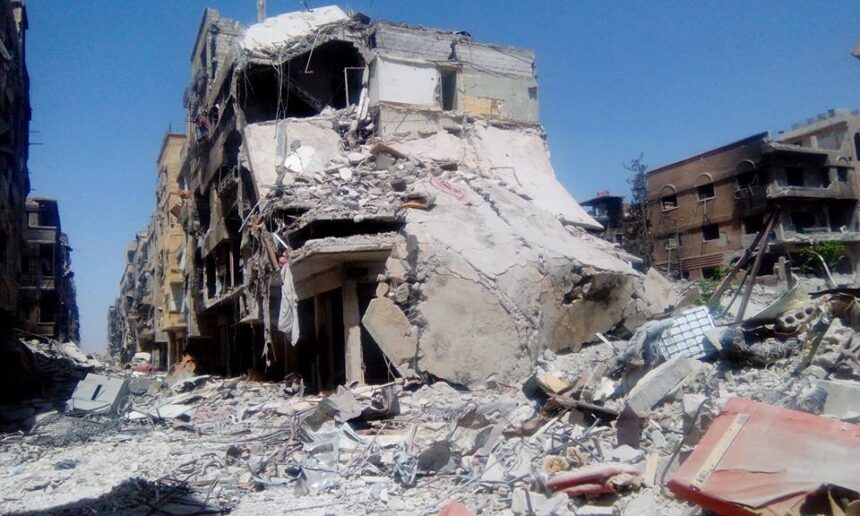 Over 60% of buildings and facilities in Yarmouk Camp have been reduced to rubble and civilian homes razed to the ground.Â
