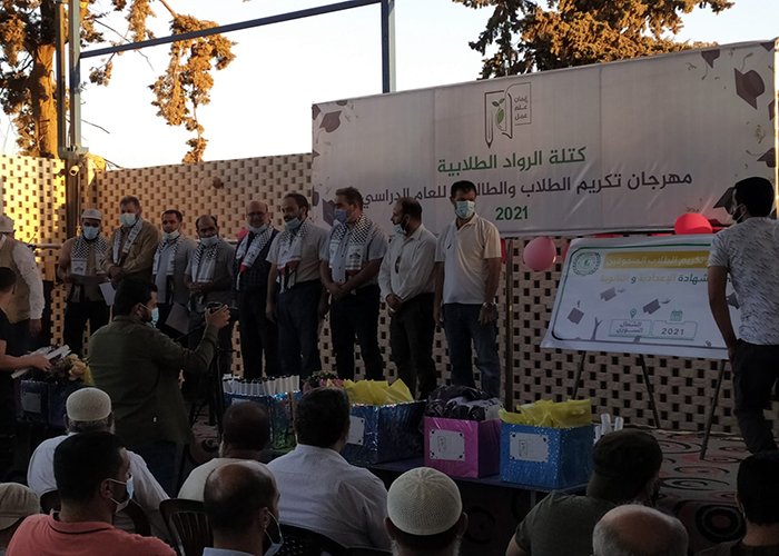 48 Palestinian students who got high scores in 9th grade exams and high school diploma for 2020/2021 academic year were honoured in in a ceremony in northern Syria on Friday.
