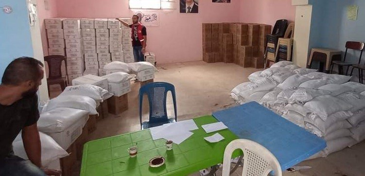 The Palestinian Red Crescent distributed food items in Hindrat Camp for Palestinian refugees, in the northern Syrian province of Aleppo.