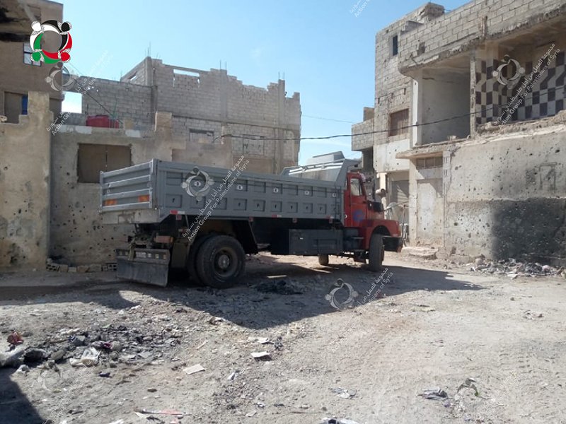 UNRWA staff workers have started clearing debris from Deraa Camp for Palestinian refugees, south of Syria.
