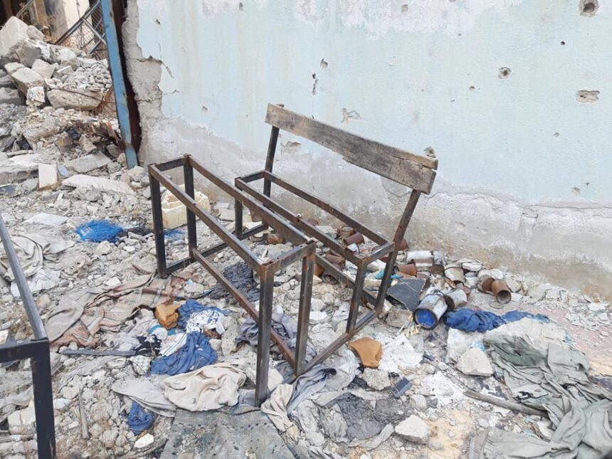 In photos circulated on social media, schools in Yarmouk Camp appear to be ravaged and furniture thrown outdoors.