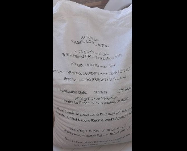 A refugee published a photo of a flour bag that was produced in November 2021 and which is valid for nine months from the production date.