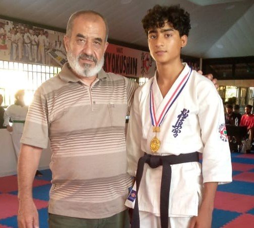 Palestinian-Syrian boy Wadii Mahmoud, from Yarmouk camp for Palestinian refugees, south of Damascus, won the gold medal in the Kyokushinkai championship (50 kgs).