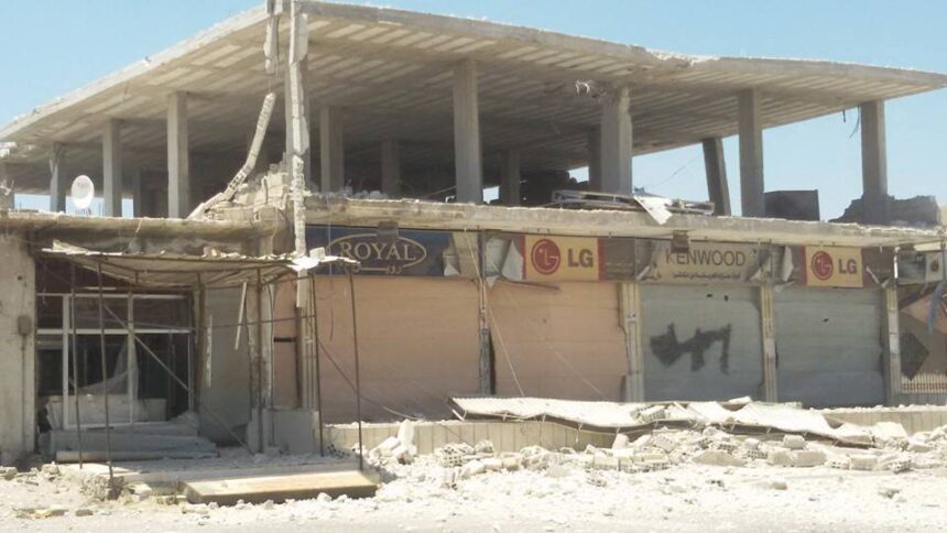Khan Al Sheih camp for Palestinian Refugees was exposed to violent bombing with explosive barrels, where the AGPS correspondent inside the camp insured that the warplanes fired a number of explosive barrels that targeted the main street in the camp, which just affected material damages. The AGPS correspondent referred that another explosive barrel hit near Al Huda mosque during the Friday prayer which forced the Imam to cancel his speech fearing on the civilians inside the mosque.