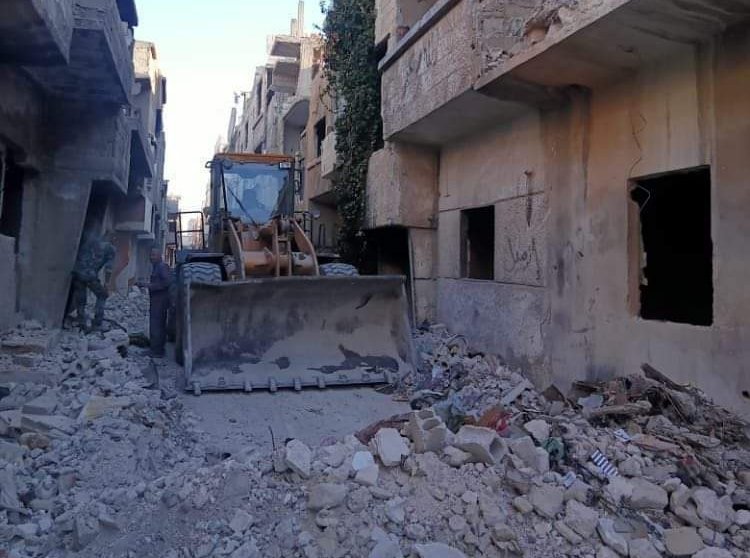 The AlHajar AlAswad council said debris has been removed from Tishreen neighborhood pending similar drives in other neighborhoods. Efforts have also been ongoing to rehabilitate the sewerage network and the UNRWA health centre in the area.