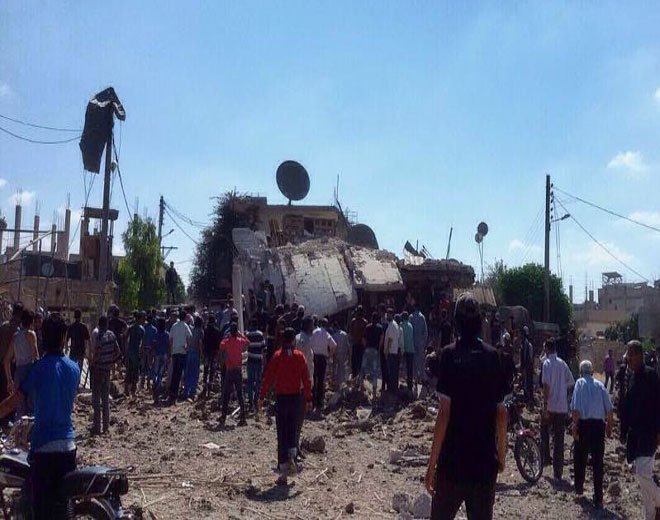 Near Daraa camp, the warplanes targeted Al Muzareeb compound with one explosive barrel , Al Muzareeb is located 11 Km far from the Daraa camp south of Syria, about 8500 Palestinian refugees live at the compound. The bombing led to a number of victims and injured people in addition to the wide destruction of houses and properties.