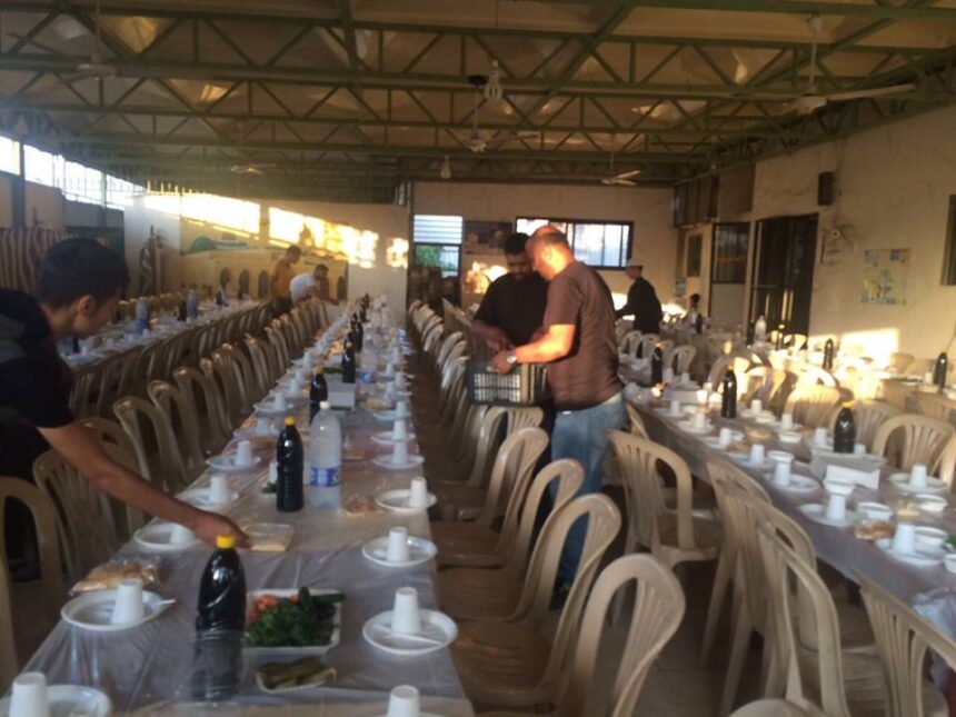 The Palestinians of Syria in Lebanon Committee in cooperation with Al Quds charity organized a collective Ramadan Iftar for about 250 people from the residents of the Syrian camps who are displaced to Al Beddawi camp in northern of Lebanon. The number of The Palestinians of Syria refugees in Lebanon and who live at Al Beddawi camp is 850 families out of 44000 Palestinian Syrian refugees resorted to Lebanon escaping the ongoing war in Syria.