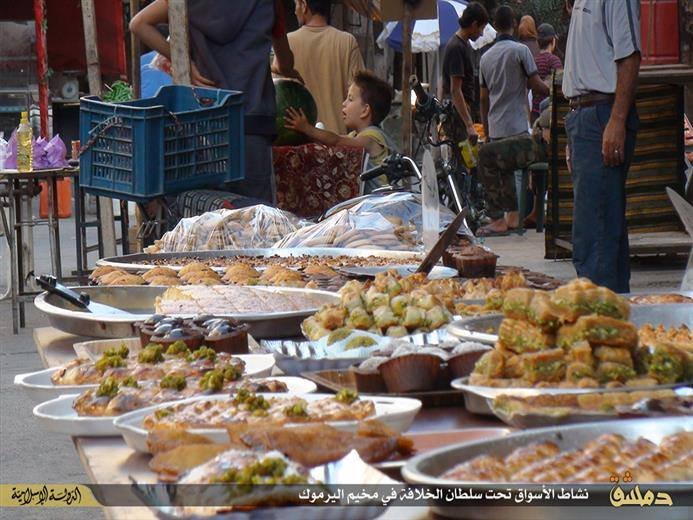 Social media pages shared recently many videos in which foods, vegetables, and sweets spread inside the Yarmouk camp markets, such recordings adopted by ISIS, its supporters, and some journalists who were subjected to blackmail and threats, in order to improve the image of ISIS in front of the media by claiming that the organization is entering food supplies and distributes it to the trapped people.