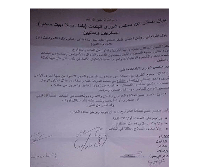 The latest assassination was against imams in Yalda, while the statement also stressed that any member belongs to Al-Nusra Front or ISIS will be discovered inthese towns will be killed immediately.
