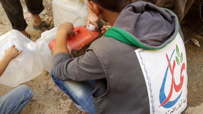 Thimar Charity Foundation continues to provide drinking water to the displaced people of Yarmouk in the towns of Yalda, Babbila, and Beit Sahem adjacent to Yarmouk.