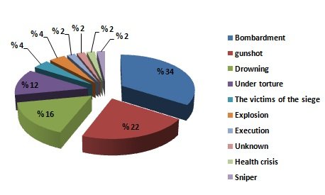 The AGPS monitoring and documentation team announced that “50” Palestinian refugees died during last August, including “11” refugees died due to gunshot, “6” refugees died under torture in the Syrian regime’s prisons, while (17) refugees died as a result of shelling and clashes, “8” refugees drowned, two refugees died because of the siege and the lack of medical care, two refugees were executed in the field, one refugee died by a sniper, while (4) refugees died due to various reasons.
