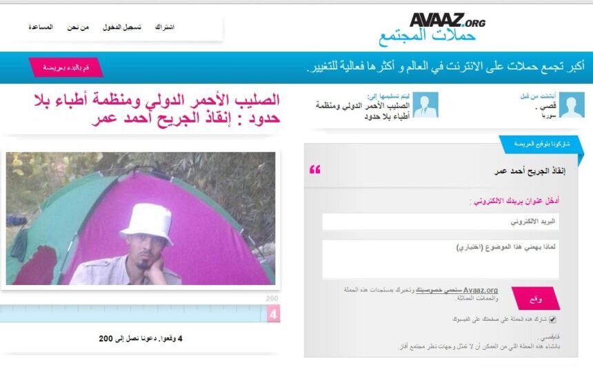 It is mentioned that Ahmed Omar was injured due to bombing on Yarmouk camp in Damascus which led to suffer paraplegia in lower extremities. Omar moved from Turkey to Greece through sea and he is now stuck in Slovenia and needs treatment and medical care. The Activists stressed in their campaign that they launched through Avaaz network for Social Campaigns on the necessity for all organizations and human rights organizations to act now to help the refugee Ahmed Omar.