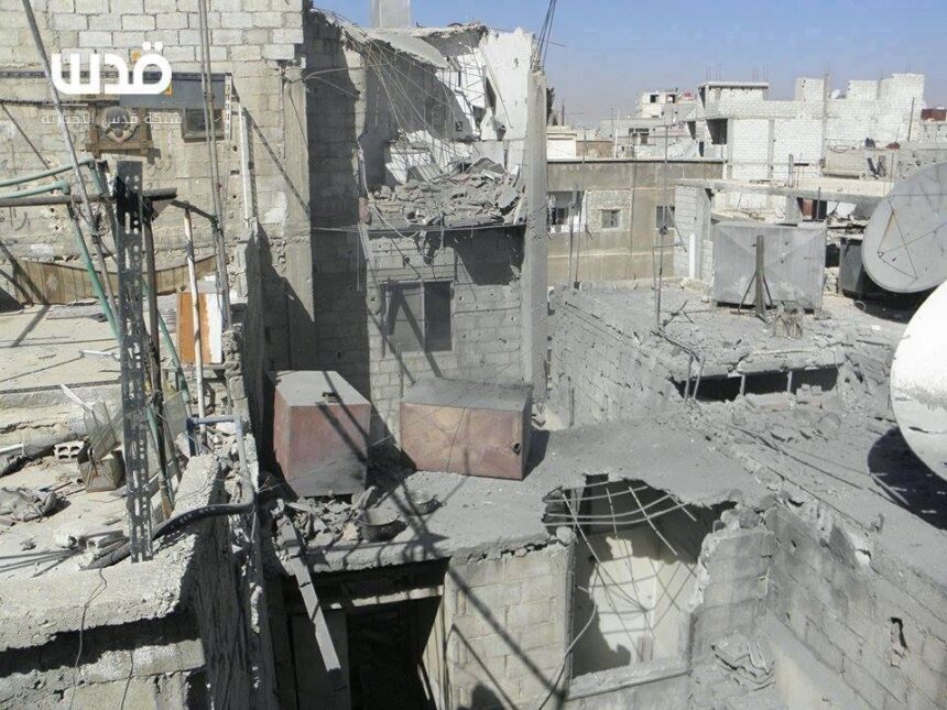 Mortar shells targeted the Yarmouk camp south of the capital Damascus yesterday, and resulted in a state of panic among the besieged residents, in addition to material damages at their homes. The shelling coincided with the exit of high school students through the Yarmouk municipality checkpoint in order to perform the general information test in the capital Damascus.