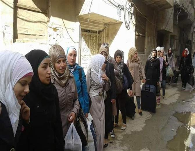The regular army checkpoints allowed  the entry of the Palestinian students who came out of the Yarmouk camp two days ago to perform general information test, where the General Authority for Palestinian Arab Refugees assumed responsibility to exit student and bring them back to the camp.