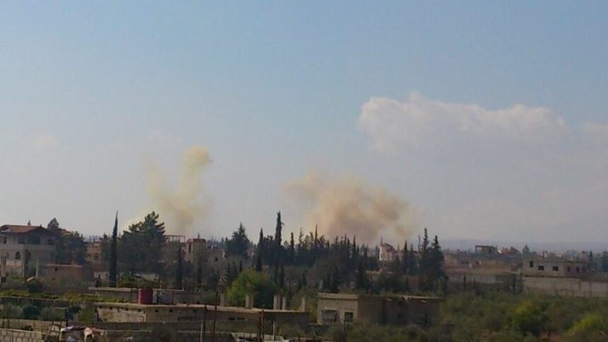The Syrian warplanes raided the sides of Khan Al Shieh camp in the vicinity of Al Zohour Street near Al Salam highway, coincided with 6 explosive barrels that targeted the same area, while warplanes still hovering and raiding the area.