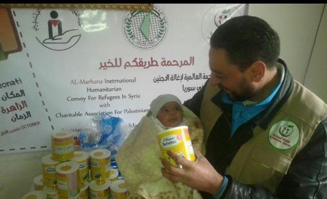 As part of “Al-Marhama Campaign” activities, the “The Charity Association to Support the Palestinian People” in cooperation with “The Charity Association to Relief the Palestinian People” has distributed 300 cans of children’s milk to Palestinian Syrian families in Al-Zahira and Qudsayya in Damascus.