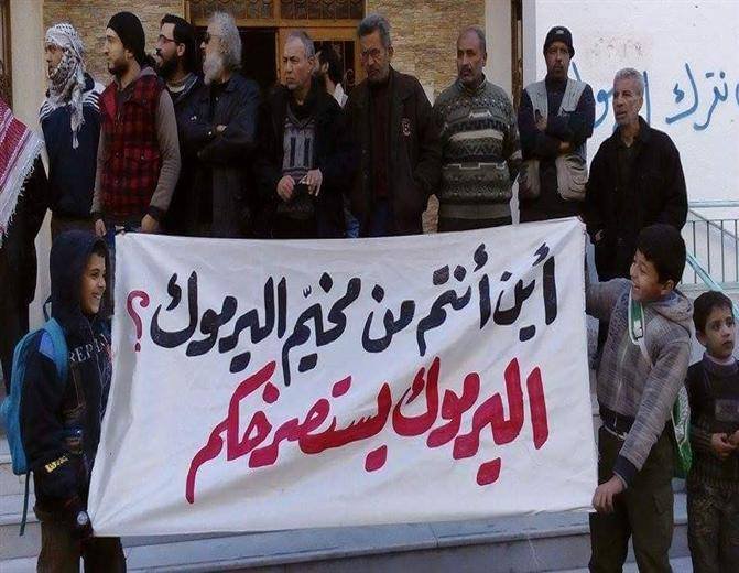 People of Yarmouk Camp Sit-in to Demand Breaking the Siege and Entering the Drugs