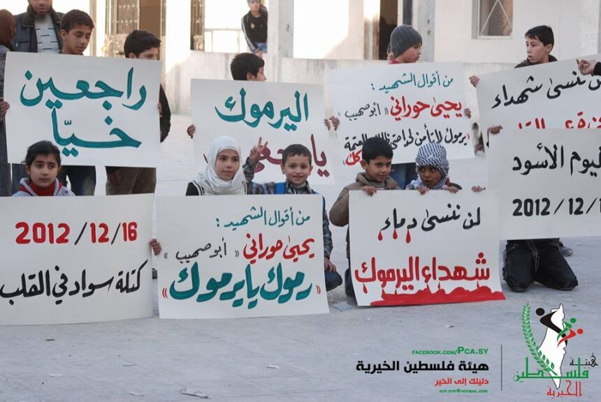 In South of Damascus, the “Palestine Charity Association” and “Jenin Sport Club” and “Jenin Scout Group” organized a public sit-in in the third anniversary of the Yarmouk’s Nakba or so called “MiG Massacre” under the title of “The Yarmouk’s Black Day”. In the event which witnessed a massive participation the people of Yarmouk stressed that they will never give up their right to return back to Al-Yarmouk camp and to Palestine as well.