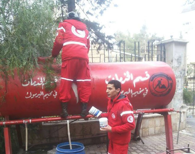 The volunteers committee of Yarmook camp continued to sterilising the water of artesian wells. The committee managed to get the sterilising pills from the ICRC and UNRWA. It is worth mentioning that the laboratory analysis, carried out by charitable medical complex in the camp, that water from the artesian wells is undrinkable, and it is for external use only. The results of laboratory have revealed that presence of high percentages of some chemical materials like calcium, sodium and potassium would lead to rise of concentration in the calcium ions.Â