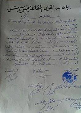 The statement, that was published by the armed forces in the southern area in its website, states that “during the negotiations about ceasing fire, there are threatens and raiding here and there. Therefore, the military forces south of Damascus confirm that they concern about the southern area including the Yarmouk camp, and stress what was announced by the legitimacy committee, earlier, that we are sharing peace or war. They also stressed that any attack on the area, especially the Yarmouk camp, is consider an attack on the whole area, and we will not keep silent , as well we will face the enemies and the attackers to stop the injustice. Â