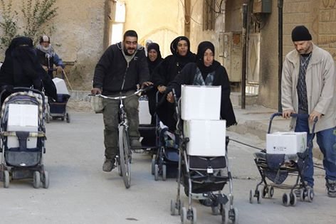 Jafra foundation, as part of the Rajien3 Project, distributed food parcels to people of Al-Yarmouk camp who had been displaced to Yalda nearby town.