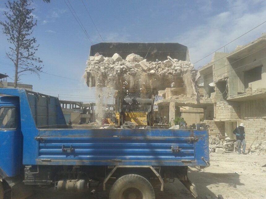 In Khan Eshieh Camp, Palestine Charity Association carried out a project to remove all the houses’ rubble off the streets, this project comes as part of the humanitarian work plan adopted by the association in light of complete absence of governmental and municipality services inside the camp, including the UNRWA services.