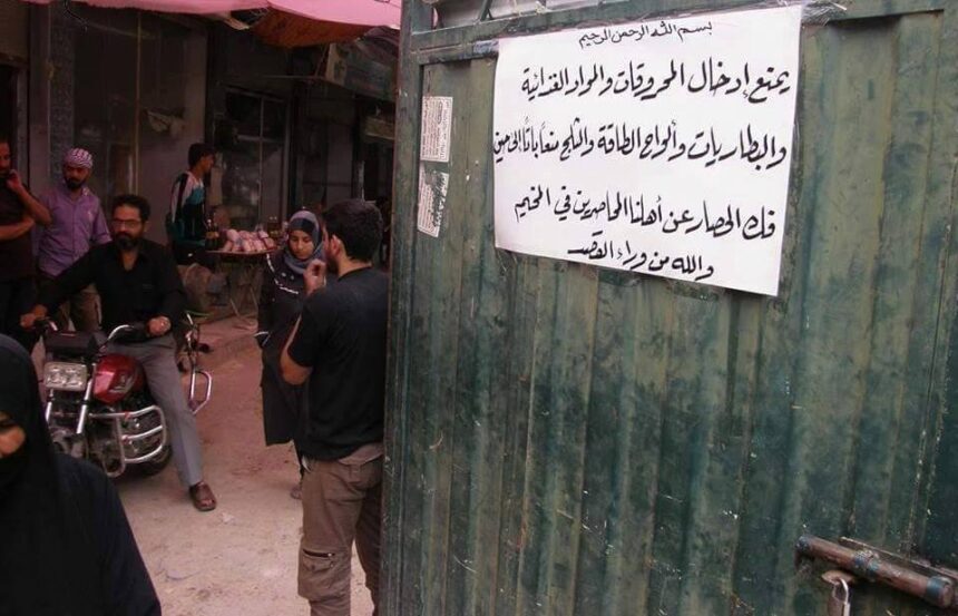 The opposition military groups south of the capital Damascus issued a decision that prevents the entry of food materials and fuel into areas controlled by ISIS in the Yarmouk camp, except for civilians in those areas.