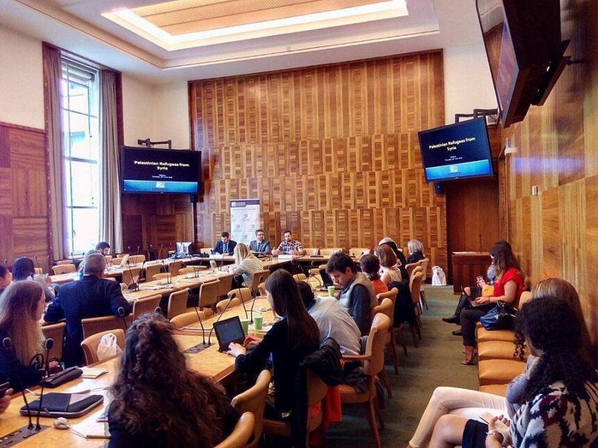 The seminar in which each of Ahmad Hosain, @ahmadhosain1 the AGPS’ CEO, the activist Nawras Ali, and Peter Stefanini, a researcher at the Palestinian Return Centre spoke about the Palestinian refugee crisis in Syria, and the suffering from siege, violations, arrests, displacement, and dire humanitarian situation. They also shed light on the experience of Palestinians of Syria and having to ride the boats of death as a result of the ongoing conflict in Syria for more than five years. In addition, they mentioned the impact of statelessness for the Palestinian Syrian refugees, who are treated as stateless.
