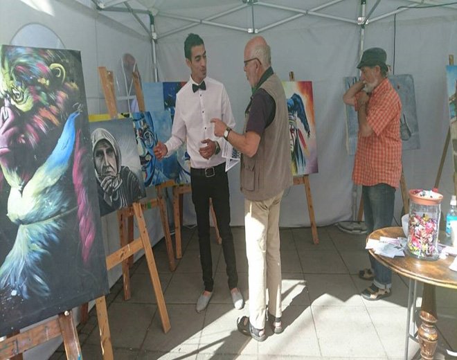 Orwa Hamzat studied Law for 2 years in Damascus, but as thousands of Palestinian-Syrian refugees and Syrians, he was forced to leave Syria due to the war. He travelled to Europe by death boat to live a safe life, and achieve his dreams to become an artist who represents his cause and country even with a brush or a word.