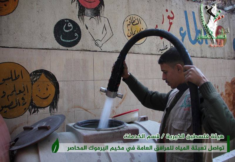 The relief bodies within the Yarmouk refugee camp Continue to provide services to the people that included securing amount of drinking water to the camp’s residents who suffer from continuous water cuts about 147 days ago, as the bodies carried out several campaigns to clean the streets of the camp and lift the rubble of it.