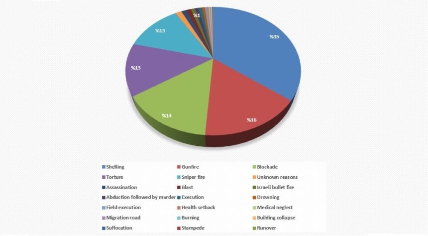 According to AGPS, three Palestinians breathed their last on the migration road to Europe. Other refugees died of reasons varying between building collapse, suffocation, burning, cold-weapon assaults, and car ramming.