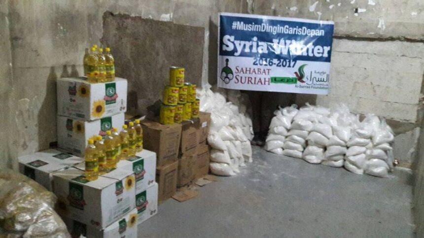 The Palestine Charity Commission, in cooperation with the Sahabat Syria Foundation, handed out food aids to 100 displaced families sheltered in makeshift tents in Al-Muzeireeb, Al-Fawar, and Al-Ajami areas.