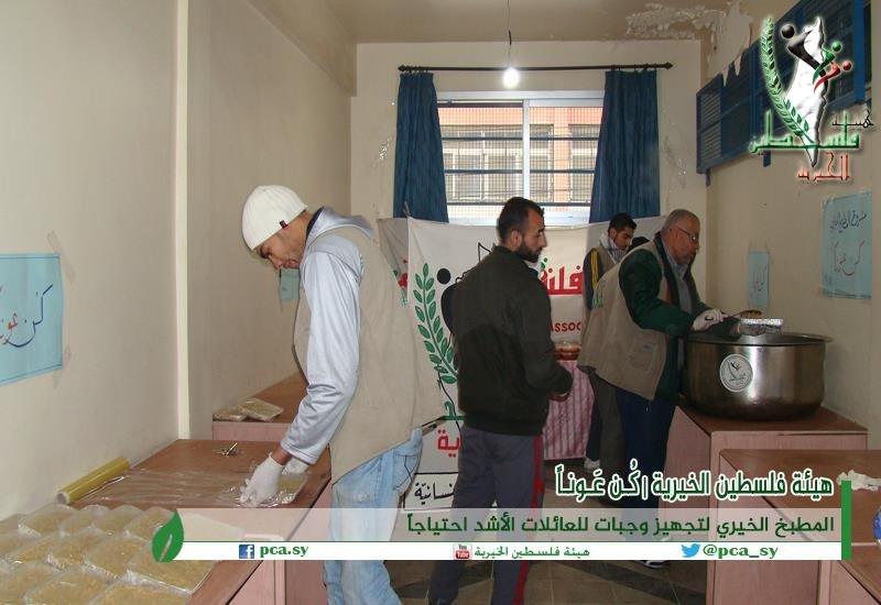 Palestine Charity Committee Distributes about 100 Food Meals to some Families at the Yarmouk Camp.
