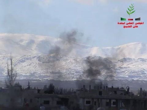 In Damascus suburb, shelling targeted the western neighborhood of Khan Al Shihe camp with at least two missiles, which resulted in the outbreak of a fire in a resident’s house. This comes in light of the severe crisis of bread afflicting people in the camp due to the prevention of the Regular army checkpoints of entering flour and bread to the camp for about three days ago, while all roads linking the camp and the surrounding areas are still closed except for “Zakia – Khan Al Shieh”, which is exposed to frequent target with missiles and heavy bullets.