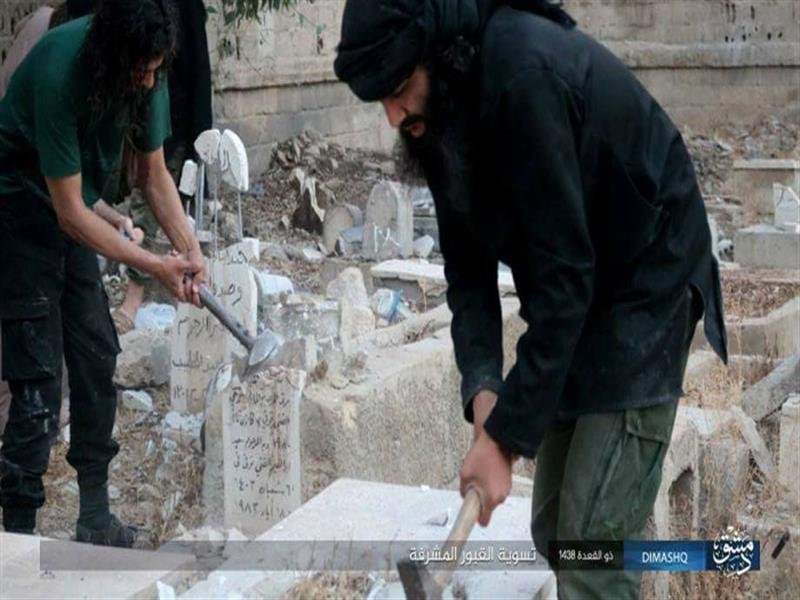 A couple of days earlier, a series of snapshots circulated on Facebook showed ISIS militants as smashing headstones of several tombs in the Yarmouk cemetery under the religious pretext. Similar assaults have been carried out by ISIS in Yarmouk’s New Cemetery.