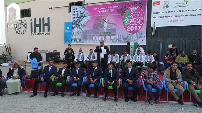 The mass wedding is the greatest since the outbreak of war of Syria, which was held with the support of the Turkiye Diyanet Foundation, Turkish IHH and other organizations that contributed to the support of the grooms, providing the expenses of marriage and their requirements for the beginning of their marriage lives.