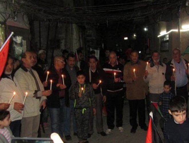 The sit-in called for by the Union of the Right to Return Committee and the Committee of the displaced from Syria, included lit candles for the people of Yarmouk camp, those stationed in the city of Jerusalem and its people.