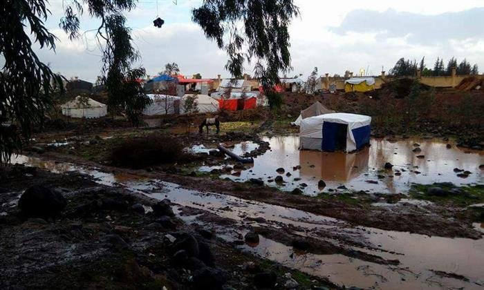 The displaced Palestinian and Syrian refugee families, have found displacement again in Deraa city, due to the storms and rains which have lasted days, hitting their tents and uprooting them from their places.
