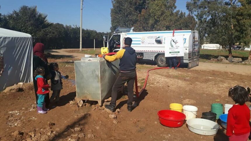 In coordination with the Kheir Umma Charity, the Palestinians in Syria Relief and Development Association launched its “Saqaya Al-Khair” campaign with the aim of delivering and distributing safe drinking water to the homes of civilians and displaced people in the town of Muzayrib, in the suburbs of Deraa, and its camp. This comes in order to alleviate their suffering caused by the drought of Al-Muzayrib Lake that fed the region with water, and to avoid the exploitation of the owners of the artesian wells, who control the prices and wages of water filling.