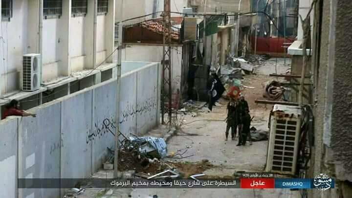 The fighting remains in Yarmouk camp for Palestinian refugees in Damascus, between ISIS and ”˜Hayat Tahrir Al-Sham’ for the 12th consecutive day. The regime managed to take control of a number of areas belonging to Tahrir Al-Sham, after launching surprise attacks on its sites in the west of Yarmouk camp, aiming to end its presence in the camp. ISIS gained control of the Haifa Street axis, the building project overlooking the Abu Fouad Stove, as well as the building block stuck to the project overlooking Yarmouk camp.