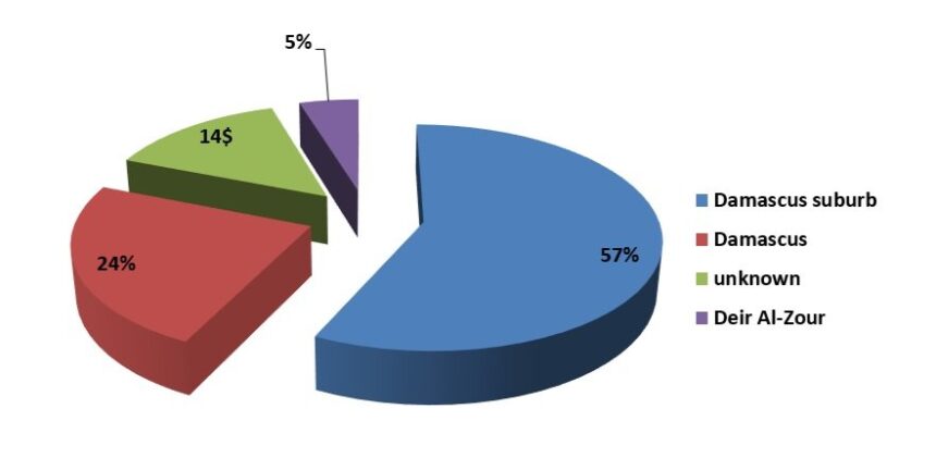 The Action Group indicated that the Palestinian refugees who died during February 2018, were distributed across Syria as follows: 12 people died in Damascus, 5 in the suburbs of Damascus, 3 in unknown places, and one person in Deir ez-Zour.