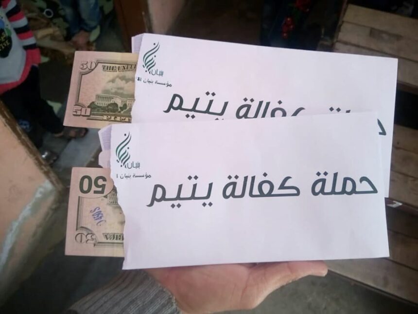 “The Structure of Humanity” Association also distributed sponsorships to the children of Muzayrib’s martyrs within the “Orphan Sponsorship” campaign. A sum of $50 were distributed to 66 orphans.